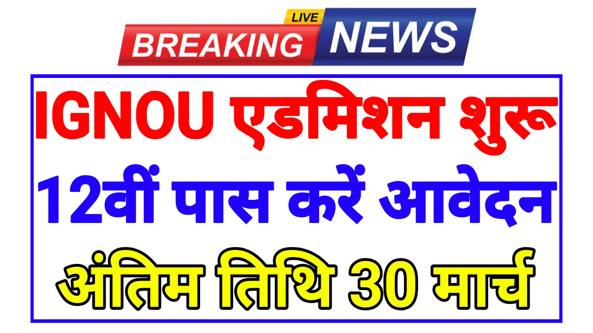 अगर आप घर बैठे पढ़ाई करना चाहते हैं या किसी कारण से नियमित कॉलेज में एडमिशन नहीं ले पा रहे हैं, तो IGNOU आपके लिए एक बेहतरीन विकल्प है। अब जबकि एडमिशन की अंतिम तिथि 30 मार्च 2026 तक बढ़ा दी गई है, तो आप इस मौके का फायदा उठाकर जल्द से जल्द आवेदन कर सकते हैं।